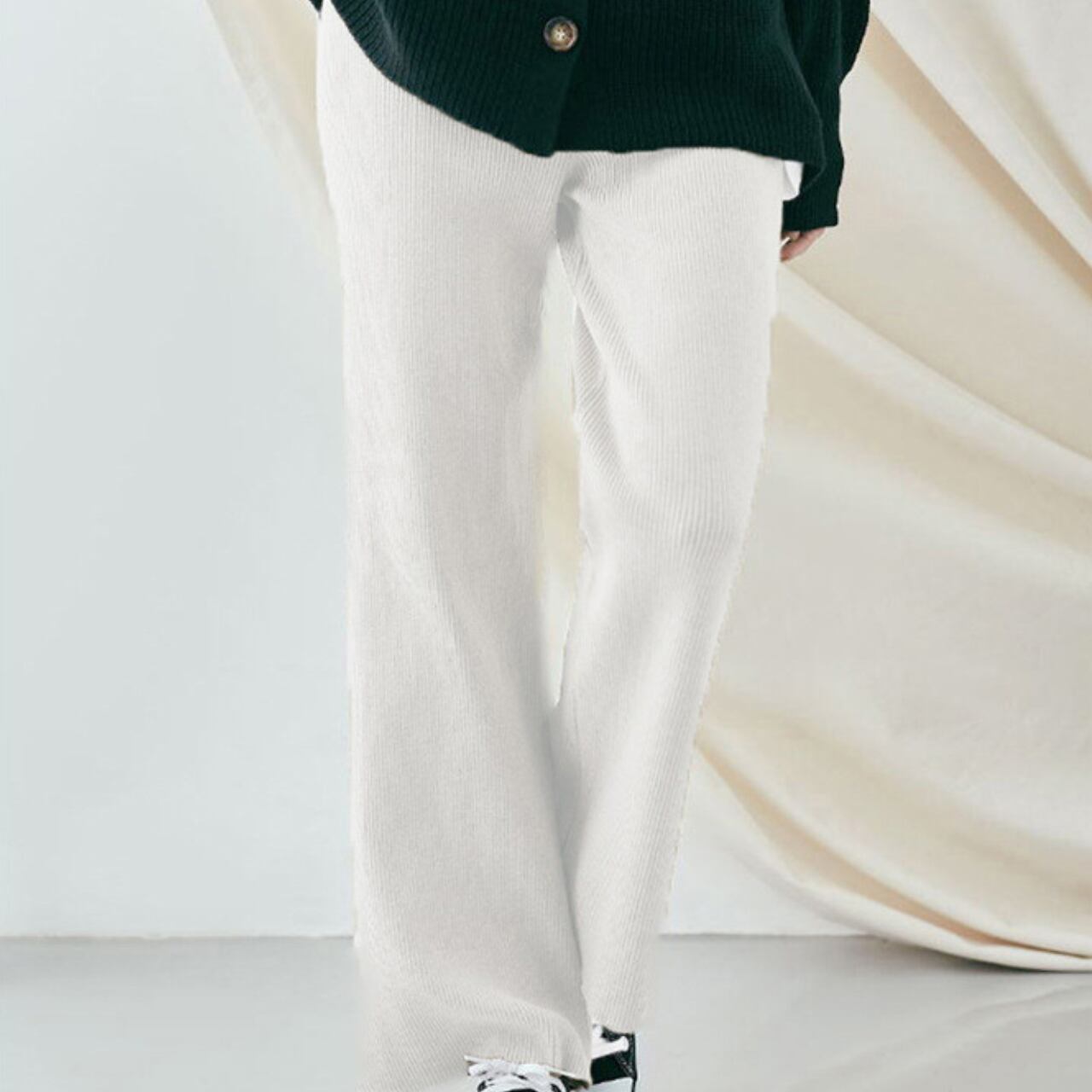 Semi wide elegant rib knit pants