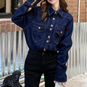 着用するだけで上品で大人可愛い雰囲気が漂うエレガントレトロデニムシャツ。
