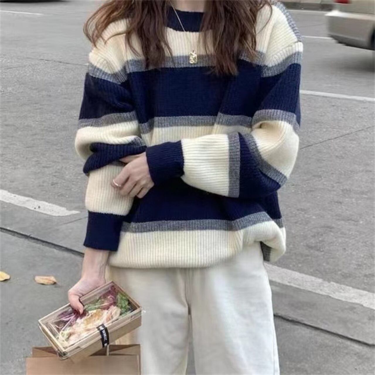 Round neck border elegant knit (2color)