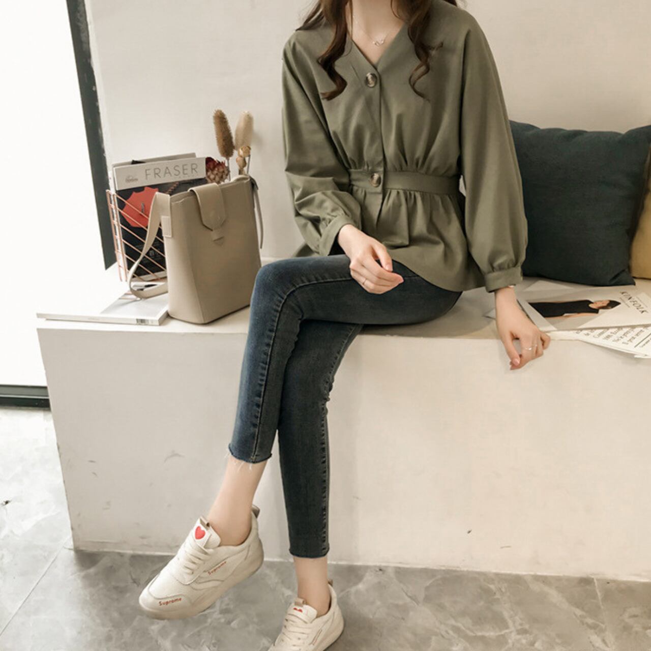 V neck elegant three button shirt (3color)