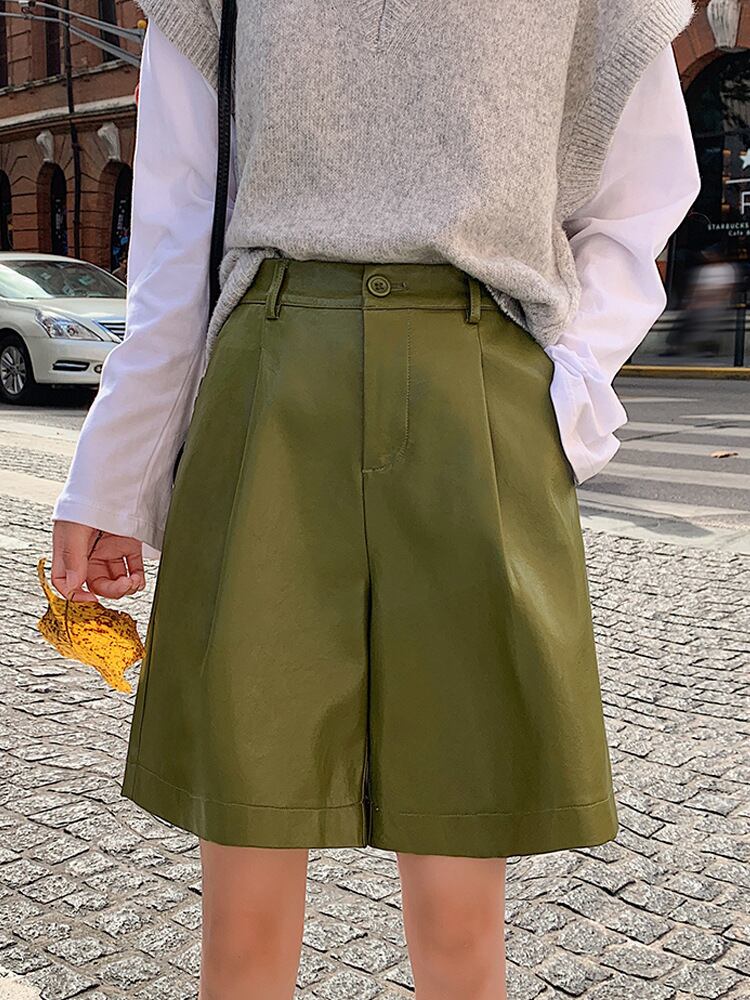 綺麗見えするのに、ゆったり感満載のレザーエレガントハーフパンツ。