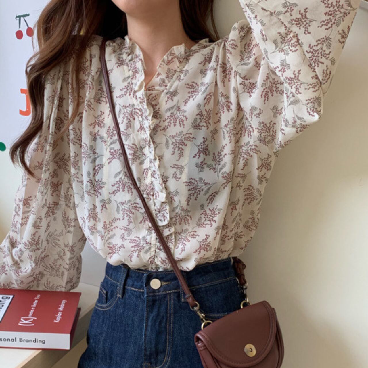 着用するだけで上品で大人可愛い雰囲気が漂うVネックエレガントフリルシャツ。
