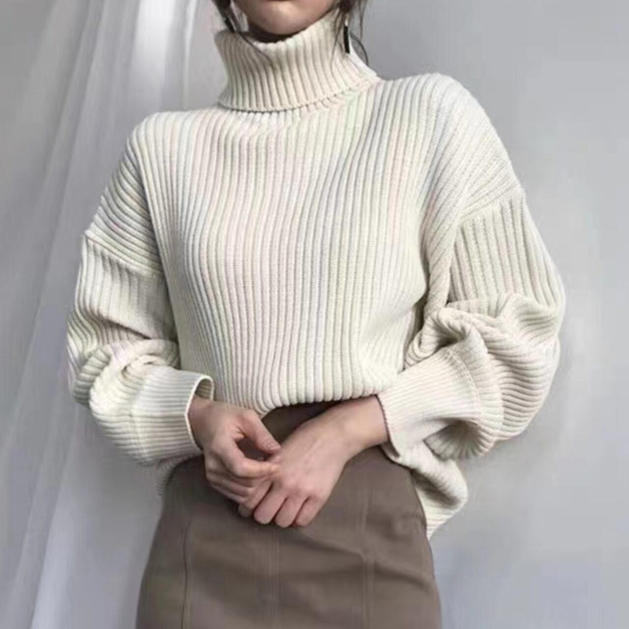 着用するだけで大人可愛い雰囲気が漂うハイネックエレガントオーバーサイズニット。