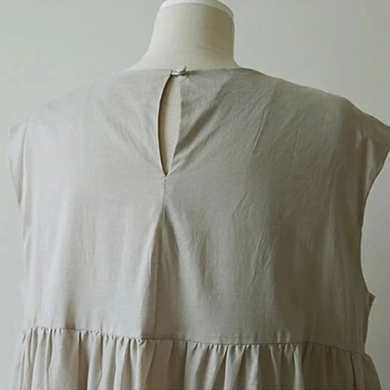 着用するだけで大人可愛い雰囲気が漂うラウンドネックエレガントスリーブレスドレス。