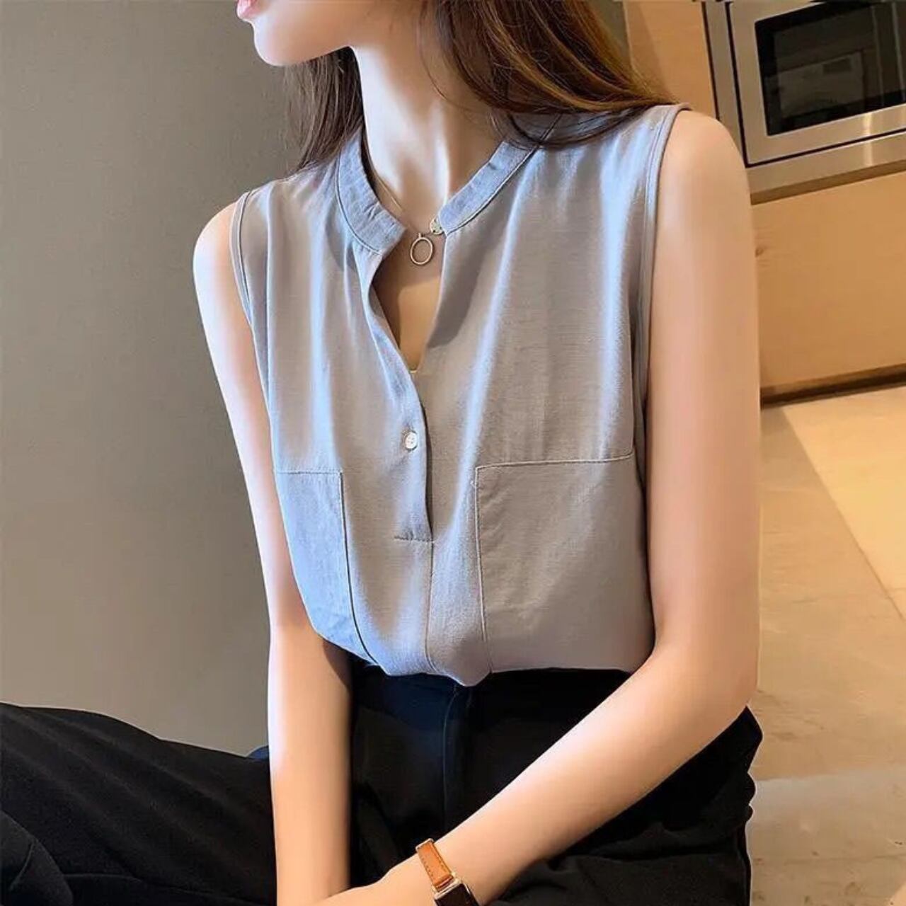 着用するだけで上品で大人可愛い雰囲気が漂うスリーブレスエレガントシフォンシャツ。